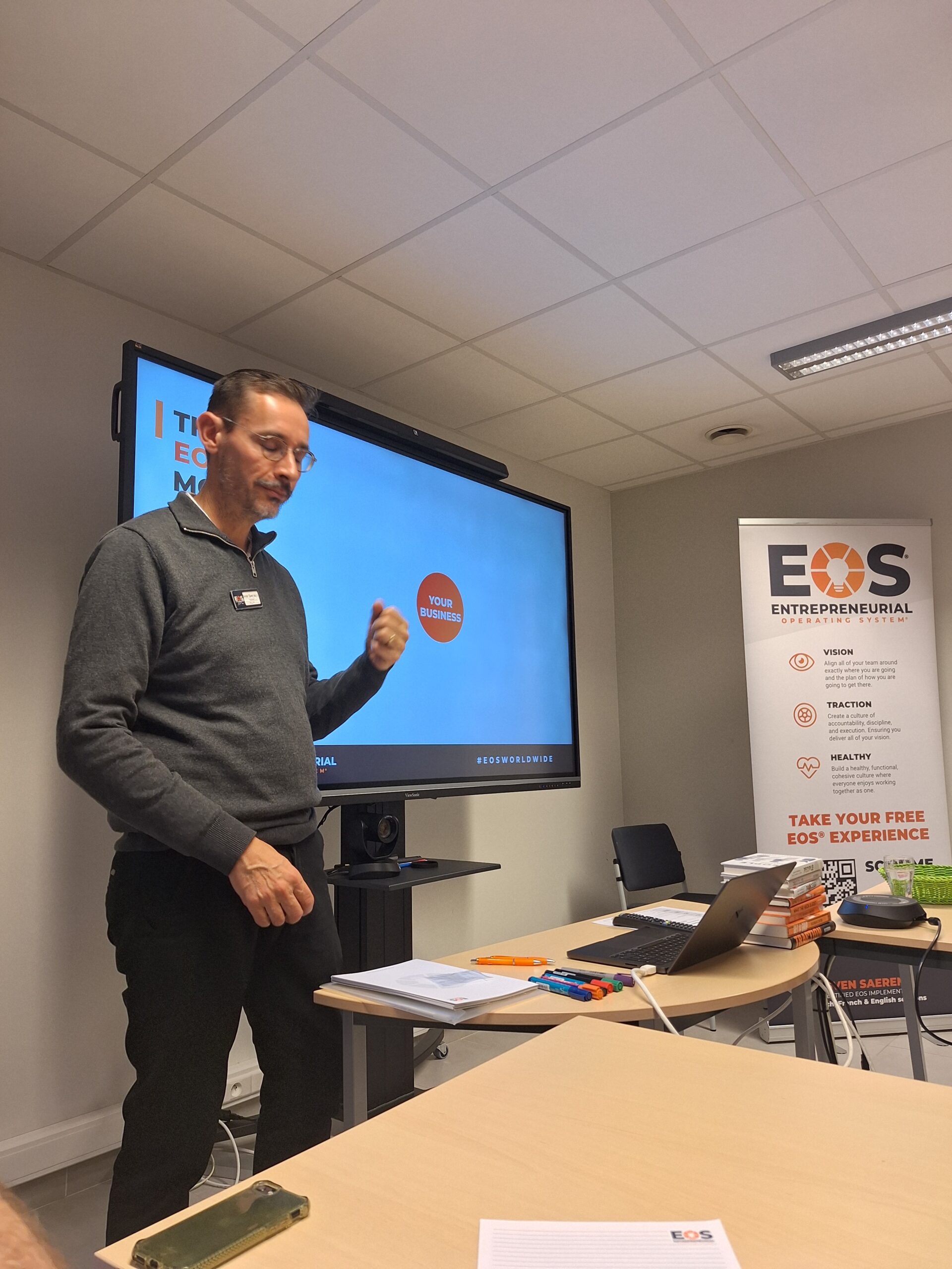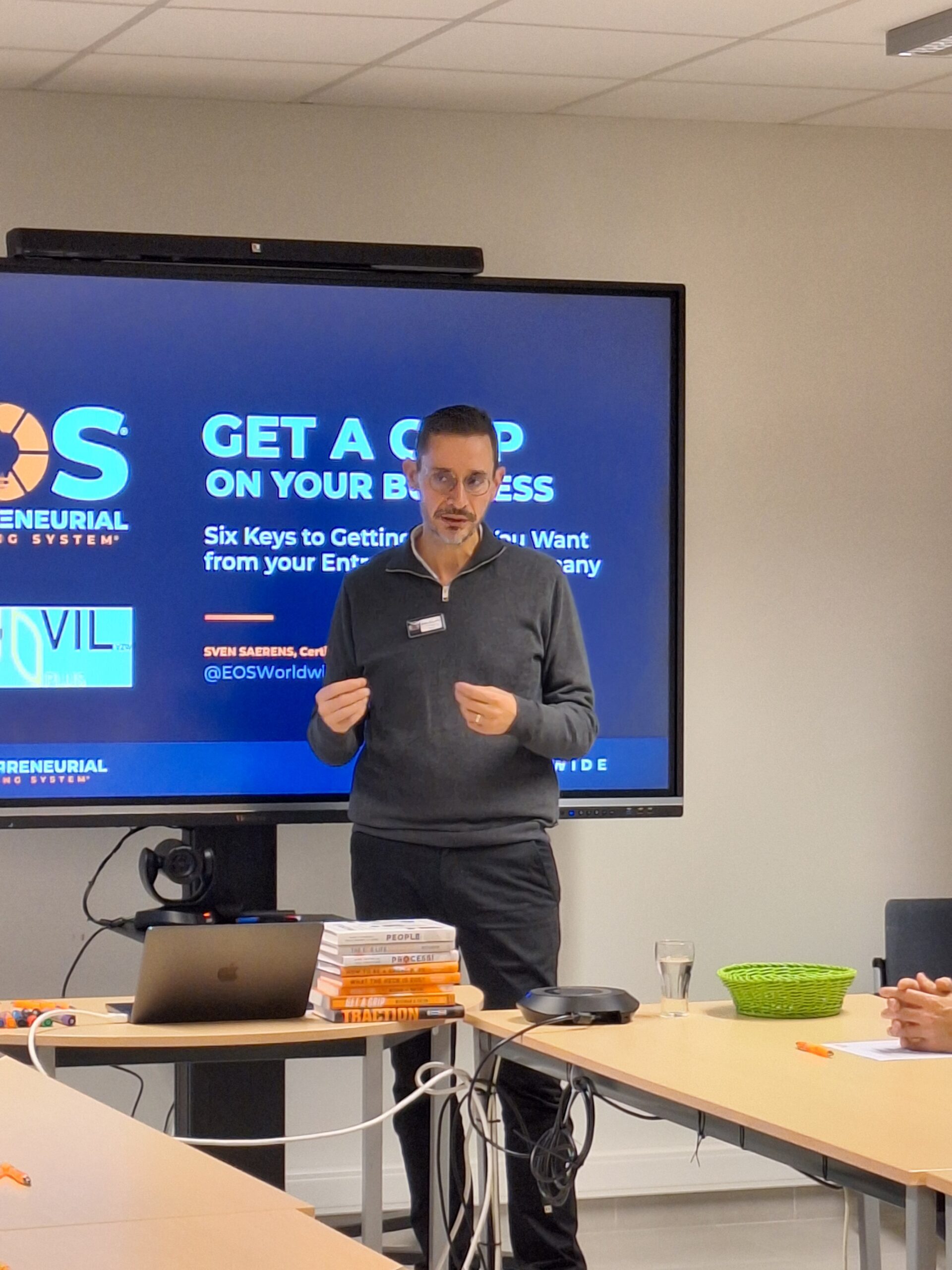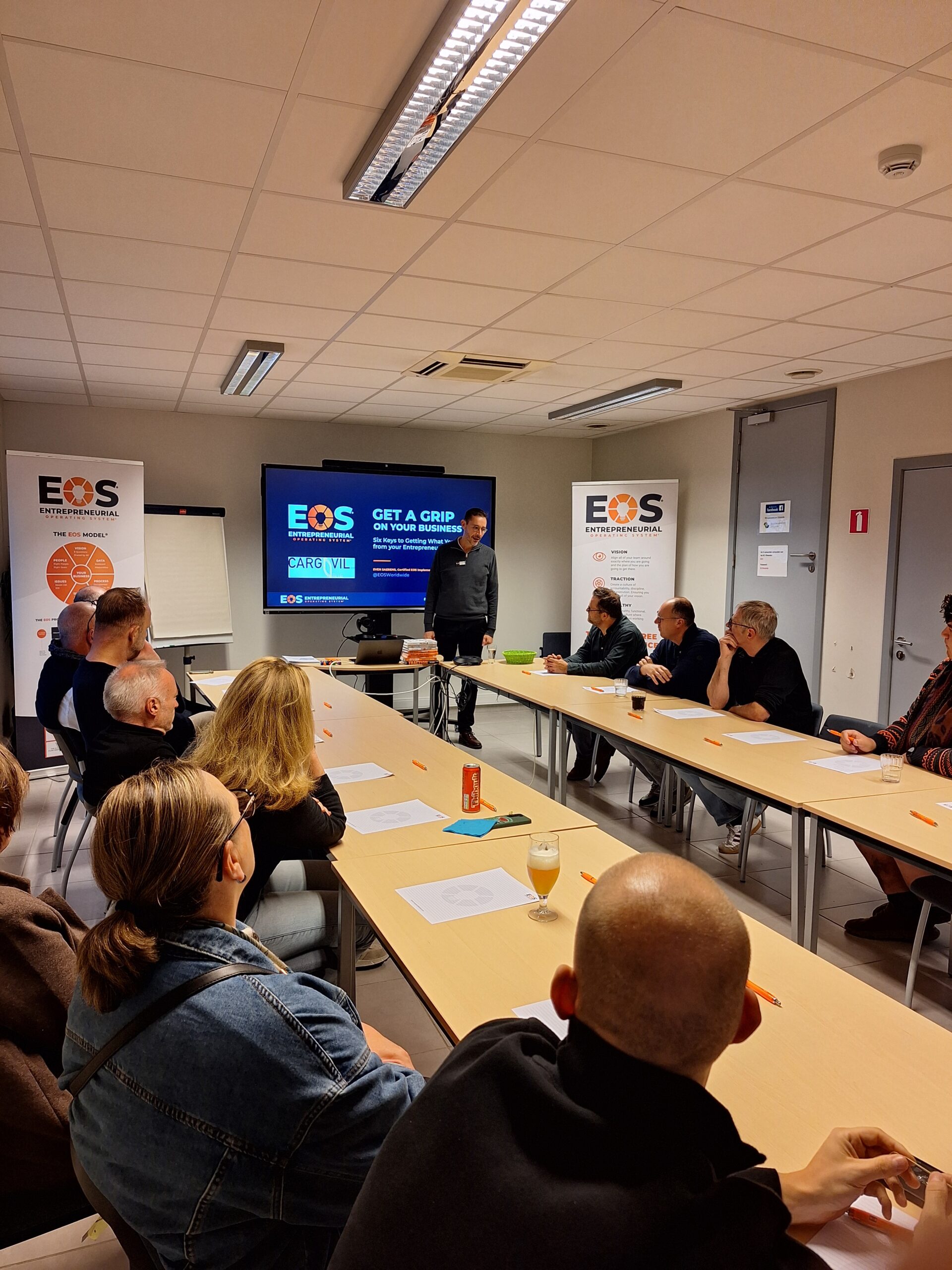 Op de netwerkdrink legde Sven ons uit wat het Entrepreneurial Operating System (EOS®) is en hoe het bedrijven helpt met groeien, structuur en samenwerking.